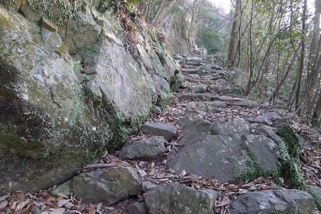 アクセスは瀬戸田サンセットビーチそばの案内板に従って、森深いカーブの続く峠道を3.2km登坂。中腹にある登山口(標高225m)まで自転車でUP。そこに駐輪して、登山道を歩いて約1.5km、所要40~60分、標高差247mを登ると山頂です。
