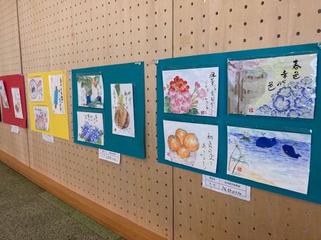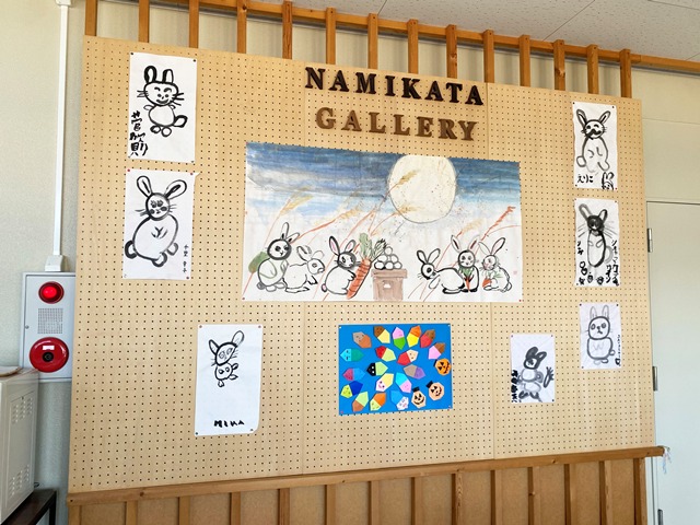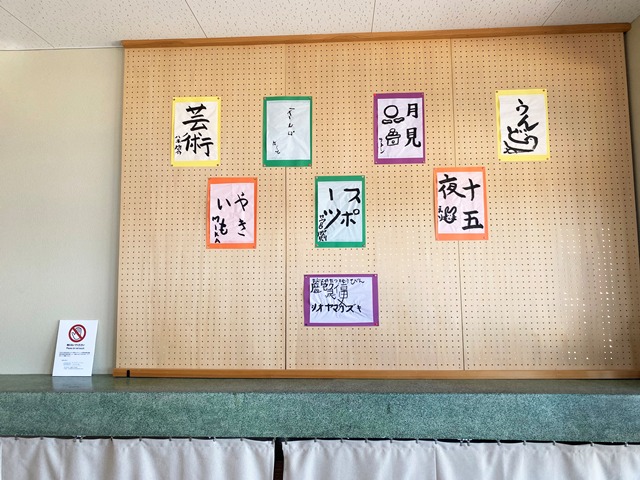 幅広く創作活動を楽しむ「ぽんたはうす」の作品展。熱心に取り組んでいる書道の腕前をいかた共同作品「輝く月と月うさぎ」がお出迎え。好きな言葉を書いた一人一人の作品も一緒にご鑑賞ください。